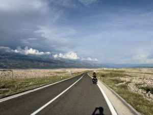 I sometimes thought of this moment back in the Swiss Alps while riding over the Croatian islands. Many of the streets (although by far not all) are almost empty, and one beautiful place follows another. The sea, the rocky coast, the colorful flowers, the blue sky, the hidden beaches, ferries, and even some train tracks… It feels like a blend of Italian lifestyle and the charm of the Greek islands. It is definitely stunning here.